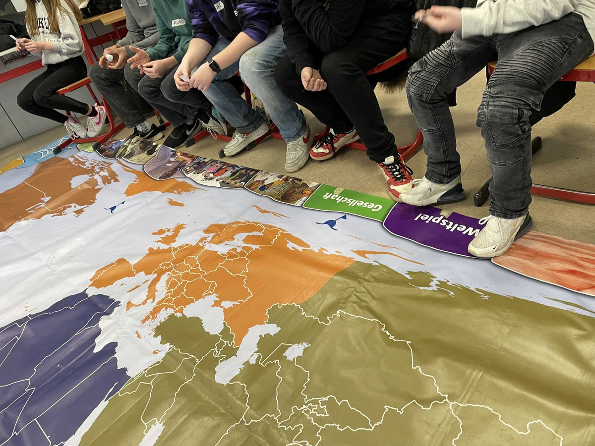 Um den Jugendlichen zu verdeutlichen, was Klimagerechtigkeit ist, wurde die Klasse zunächst in drei Gruppen geteilt. Jede Gruppe sollte aus dem vorhandenen Material eine Strickleiter basteln. Eine Gruppe hatte jedoch mehr Material zur Verfügung als die anderen. "Das ist ja ungerecht", schimpften die Schüler:innen mit weniger Material. Daran disktutierten wir, was Gerechtigkeit bedeutet, um es anschließend auf die globalen C02-Emissionen der reichen und armen Länder im Vergleich anzuwenden.